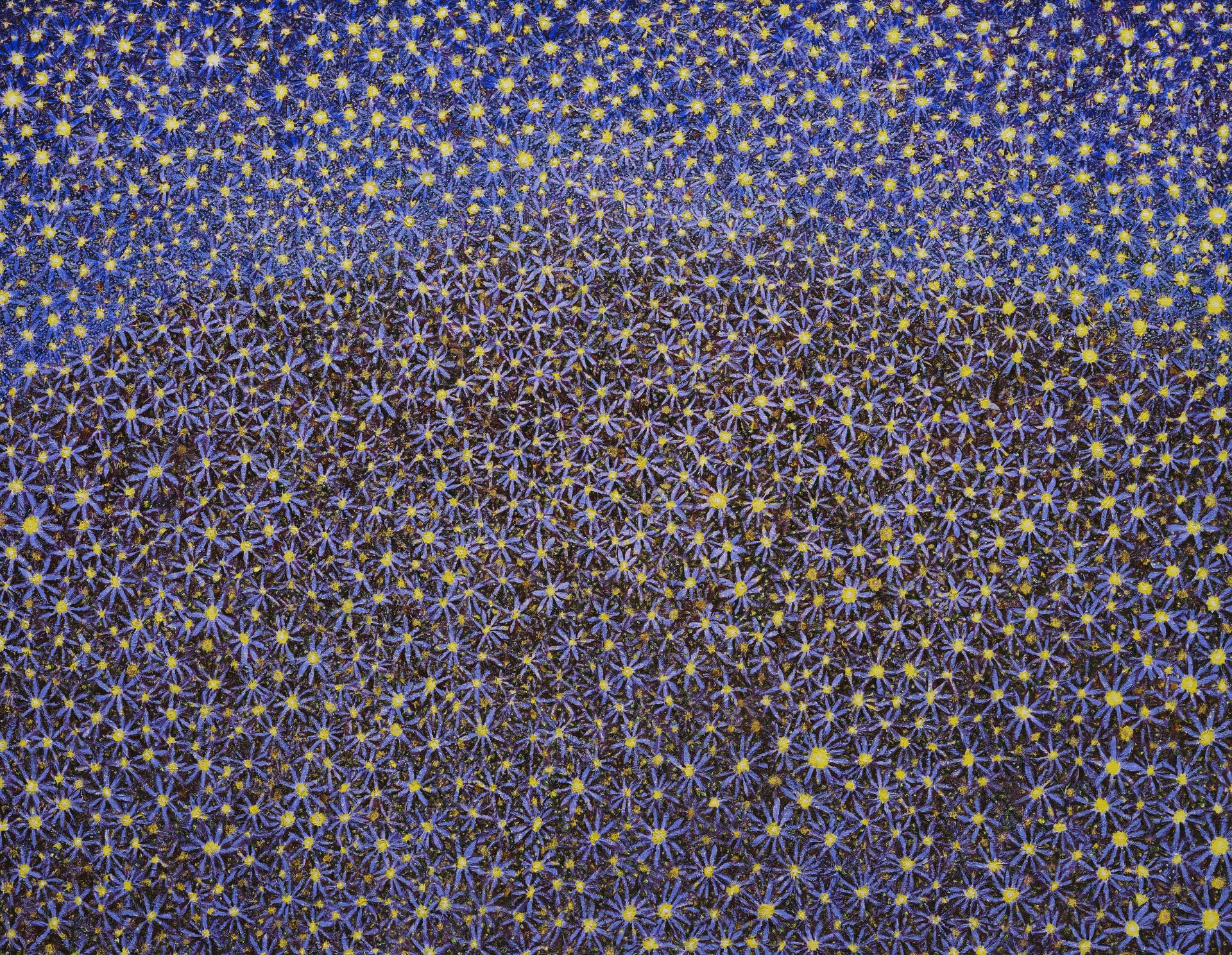 Heo Suyoung is deviating from simple arrangement and superposition by giving individual uniqueness to repeated images. Images filling up the screen let you feel lost in a distant space, but soon after, the differentiated shapes attract you and make you observe them thoroughly one by one. Once you think it's a flower, and then you realize it's a star, and once you think it's a forest, and then you walk along the mushroom. After that, by the time you are infatuated with the detailed expression and representation, a space where everything is mixed up comes out. In this way, it guides the viewers into the infinite universe. Being full indicates being empty, and being numerous conveys being innumerable.