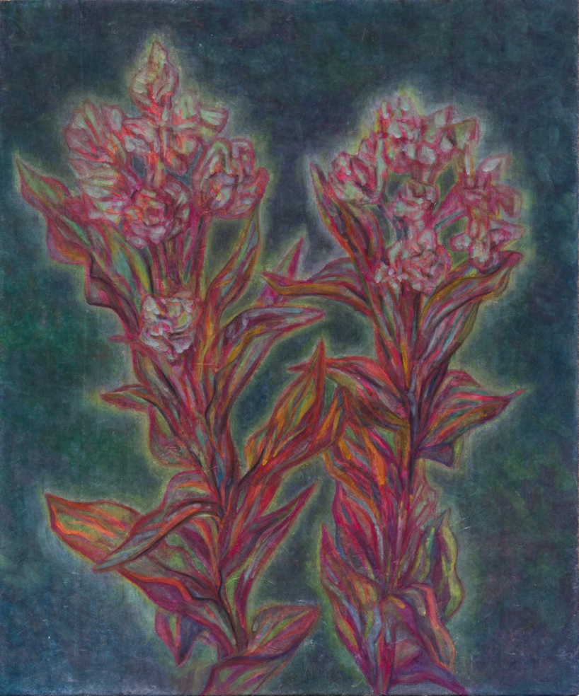 새벽의 왕-금난초(2025, 장지에 주묵, 분채, 콘테, 45.5 × 37.9 cm)