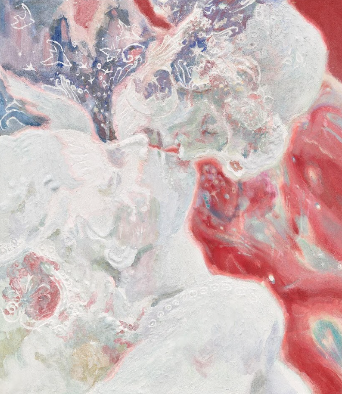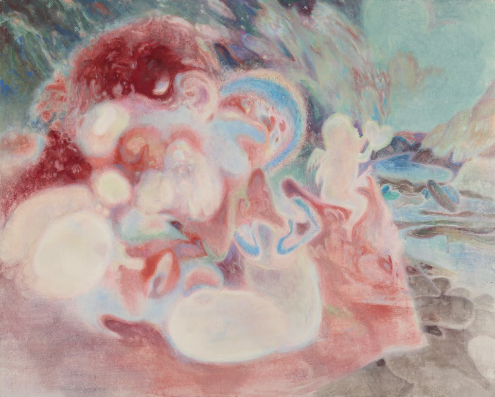 김리나, <Fragile Bliss>, 2023, 장지에 석채 및 혼합재료, 130.39x162.2cm.
